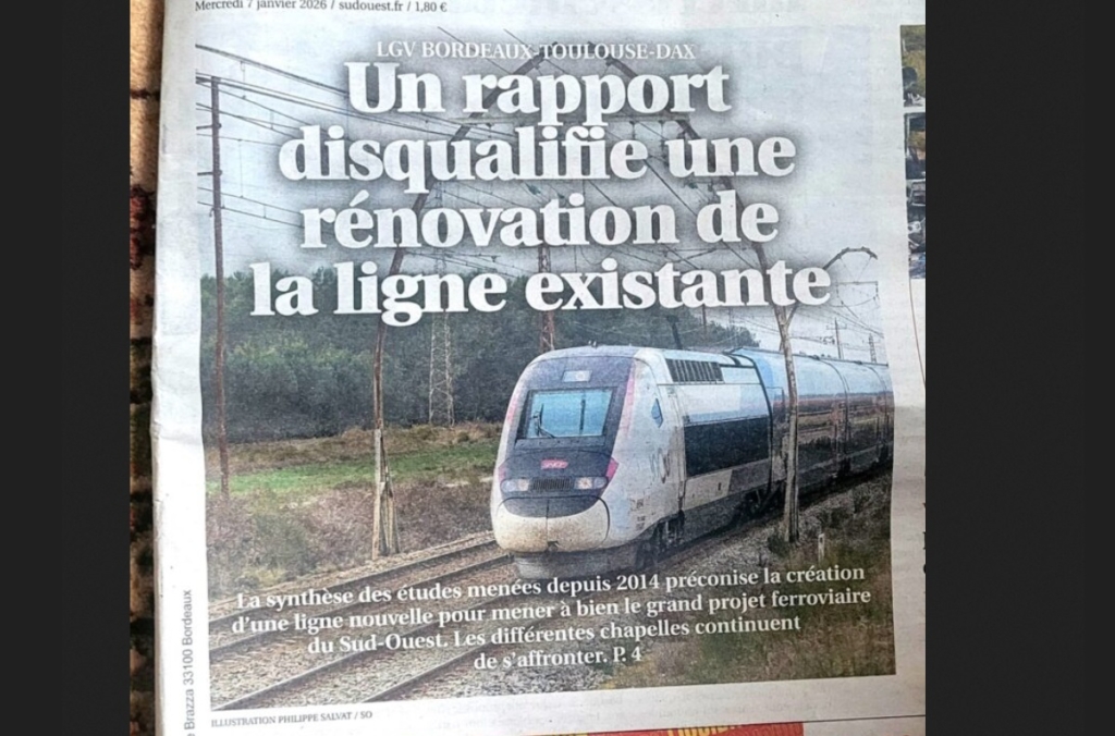 « L’opportunité de ligne nouvelle Bordeaux-Dax doit être réinterrogée à plus longue échéance. Il semble en effet que moyennant des travaux de relèvement de vitesse sur la ligne, il est possible d’obtenir quasiment les mêmes bénéfices qu’une ligne nouvelle, à un coût bien moindre. » (p.78)