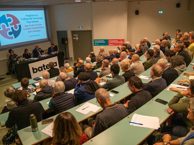 Ehun bat pertsonek parte hartu dute “Ipar Euskal Herriko Lurralde kolektibitatea asma dezagun” foroan, azaroaren 22an, Baionako Arteen Hirian. Ikertzaileak, hautetsiak, lurraldeko eragileak eta herritarrak bildu ditu Batera herritar plataformak antolatu hitzorduak, analisiak, esperientziak eta gogoetak trukatzeko ipar Euskal Herriko gero instituzionalari buruz.