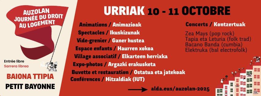 Au programme d’Auzolan, journée du droit au logement, les 10 et 11 octobre prochains.