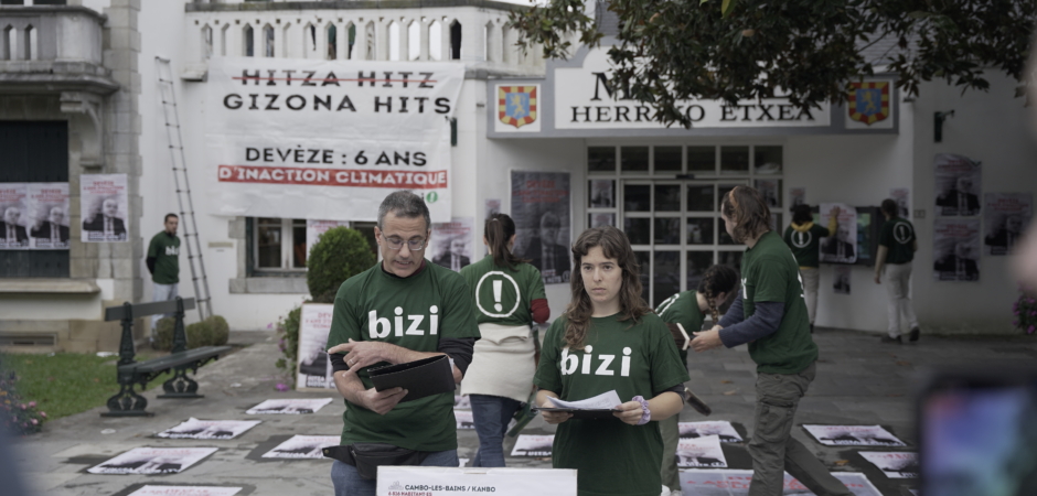 Asteazken honetan, urriaren 15ean, Biziko hogei bat ekintzailek irmoki salatu dute Christian Devèze-en “klimaren arloko 6 urteko geldirik egotea” Kanbon, Herriko Etxearen aitzinaldea afixaz estaliz.