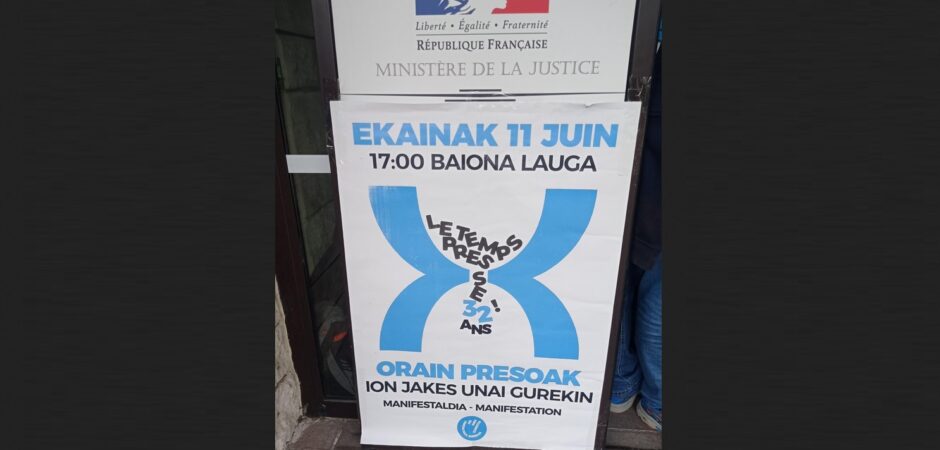 Un nouveau gouvernement a été désigné le 20 mai, un gouvernement qui en apparence, semble indiquer la volonté du Président de la République de s’inscrire dans une continuité d'action, même Ministre de la Justice et même Ministre de l'intérieur. Nous n’accepterons pas que le processus de paix reste dans une impasse, que le Président de la République reste dans l’indifférence, dans le silence et le mépris. Dans le contexte des décisions concernant les demandes de libération conditionnelle de Jakes Esnal et de Jon Parot, il sera important que nous nous mobilisions le 11 juin dans les rues de Bayonne face au mépris de Paris et à l’aveuglement de la logique antiterroriste. (...)