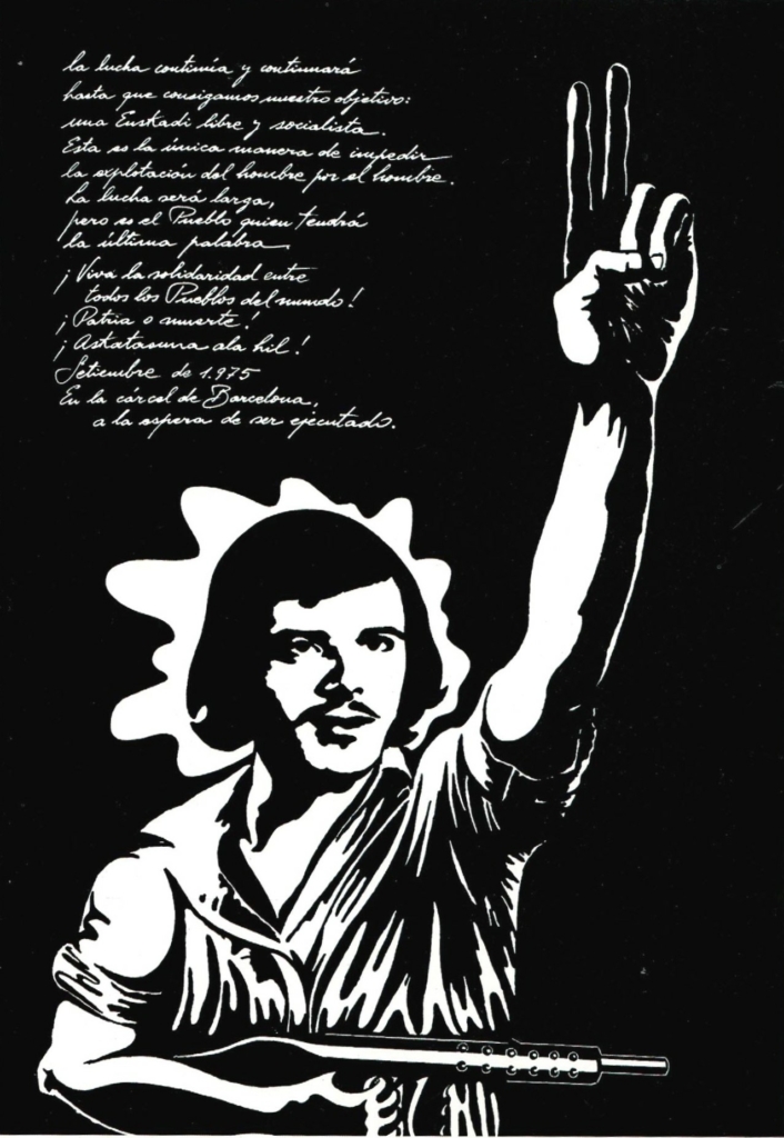 « En 1970, le peuple basque avec l’aide du peuple espagnol, réussit à sauver les combattants d’ETA, condamnés à mort par le régime franquiste, tandis que la force des protestations internationales obligeait Franco à commuer les peines capitales de six révolutionnaires basques. De nombreuses années ont suivi, toutes marquées par la répression et les souffrances du peuple basque, face au spectacle de tant de ses enfants tombés sous les balles de Franco. Notre combat ne s’en est pas moins poursuivi et se poursuivra jusqu’à ce que nous ayons atteint notre objectif : une Euskadi libre et socialiste, seule manière de mettre fin à l’exploitation de l’homme par l’homme. La lutte sera longue, certes, mais notre peuple aura en définitive le dernier mot.
