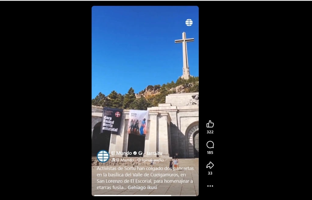 Sortu rend hommage à Txiki et Otaegi sur le monument de la Valle de los Caidos, aujourd’hui de Cuelgamuros, « temple » du franquisme.