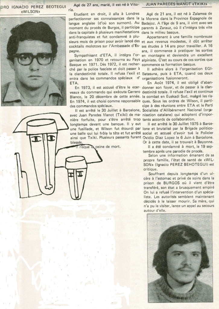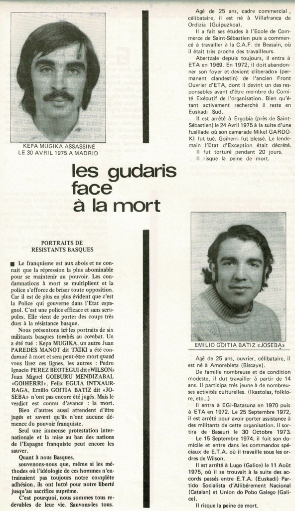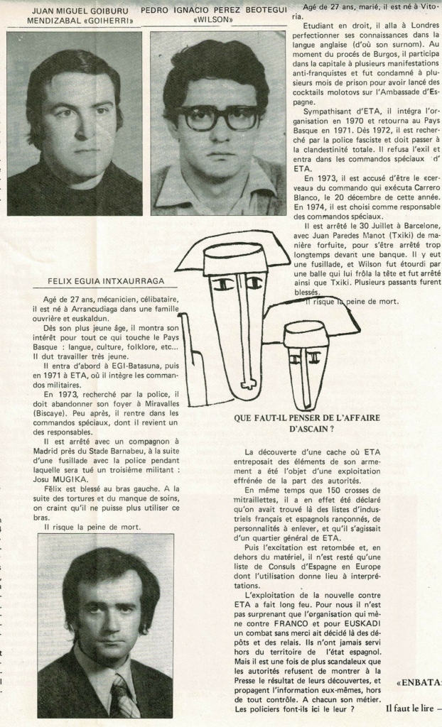 Pour commémorer à notre manière l’exécution de Txiki et d’Otaegi qui marqua la décennie, voici une série d’articles extraits d’Enbata, mais aussi d’autres journaux.