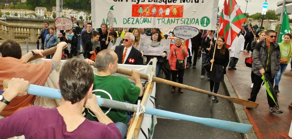 A l'appel du mouvement altermondialiste basque Bizi!, plus de 300 personnes ont défilé pour revendiquer une politique climatique créatrice d'emplois, formant le bloc le plus important de la traditionnelle manifestation qui a réuni 1100 personnes dans les rues de Bayonne où défilaient la CGT, FSU et LAB. D'autres mobilisations ont aussi eu lieu en Iparralde où LAB appelait à se mobiliser à Mauléon et Ciboure..