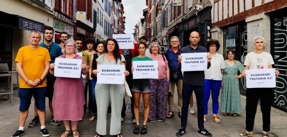 Frantziako Estatuak eta gainerako instituzioek hamarkada luzeetan euskararen kontrako politikak sustatu dituzte, gure hizkuntza desagerrarazteko helburuarekin. Euskararen Erakunde Publikoa sortu zelarik, Ipar Euskal Herriko biztanleen 4tik 1 euskalduna zen. Hogei urte berantago, biztanleen 5etik 1 baizik ez da euskalduna. Denek euskararen alde ahalegin oro egiten dute omen, baina memento berean, euskara peko errekarako bidean da. (...) Guk, euskaltzale guziok, ondoko hitzordua abenduaren 27an dugu, Bilboko Bilbao Arenan, Kontseiluak antolatu ekitaldian euskararen Pizkundea nahi dugula adierazteko. (...)