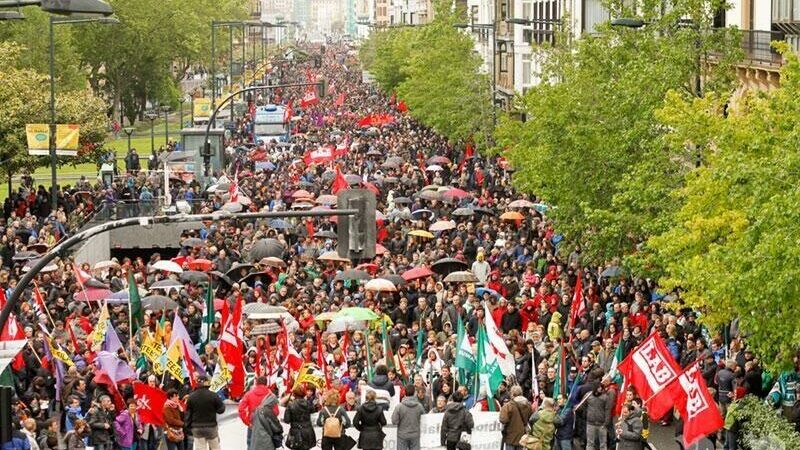 Maiatzaren 30 honetan, milaka herritar mobilizatu dira Hego Euskal Herriko Greba Orokorraren karietara murrizketari ezetz erraiteko eta eskubide suntsiketari bestelako politikak aldarrikatzeko.