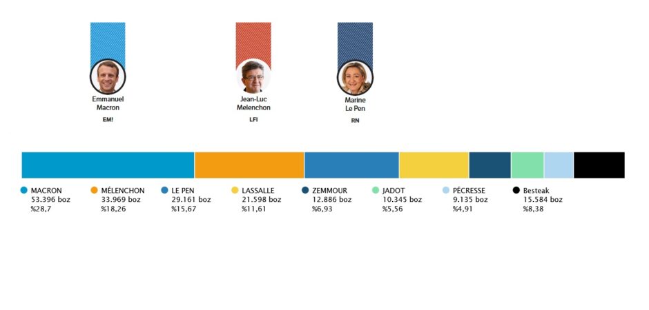Presidentzialak Iparraldean: Macron %28,7, Mélenchon %18,26, Le Pen %15,67