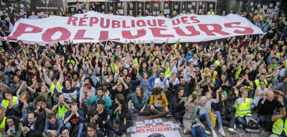 À l’appel des Amis de la Terre, Action Non-Violente COP21 et Greenpeace, 2030 citoyennes et citoyens ont paralysé pendant plus de 10 heures l’activité de quatre tours de la Défense pour dénoncer l’alliance toxique d’Emmanuel Macron et du gouvernement avec les dirigeants des entreprises multinationales.